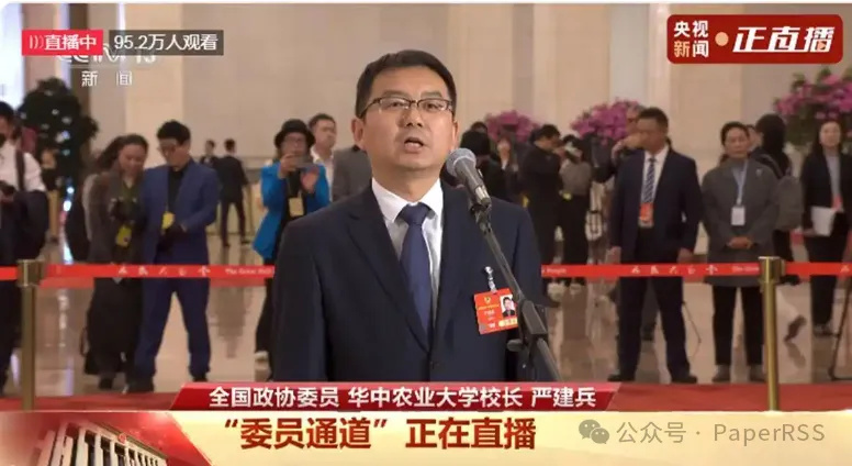 3 月 4 日下午,2025 年全国两会首场 “委员通道” 开启,来自湖北的全国政协委员、华中农业大学校长严建兵第一个走上通道接受采访。